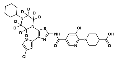 | Synonym : | 1?(3?chloro?5?{[4?(4?chlorothiophen?2?yl)?5?[4?cyclohexyl-D8-piperazin?1?yl]?1,3?thiazol?2?yl]carbamoyl}pyridin?2?yl)piperidine?4?carboxylic acid |