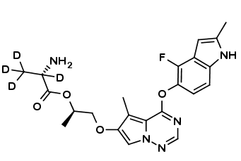 | Synonym : | L-Alanine (1R)-2-[[4-[(4-fluoro-2-methyl-1H-indol-5-yl)oxy]-5-methylpyrrolo[2,1-f][1,2,4]triazin-6-yl]oxy]-1-methylethyl Ester-d4; BMS 582664-d4; |