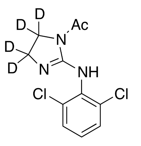 | Synonym : | N-(2,6-Dichlorophenyl)-4,5-dihydro-1H-(imidazol-d4)-2-amine Hydrochloride; 2-(2,6-Dichloroanilino)-2-(imidazoline-d4) Hydrochloride; Atensina-d4; Capresin-d4; Catapres-d4; Haemiton-d4; Hemiton-d4; Isoglaucon-d4; Katapresan-d4; Neuclon-d4; Normopresan-d4; ST 155-d4; |