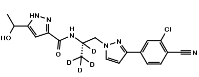 | Synonym : | N-[(1S)-2-[3-(3-Chloro-4-cyanophenyl)-1H-pyrazol-1-yl]-1-methylethyl-D4]-5-(1-hydroxyethyl)-1H-pyrazole-3-carboxamide |