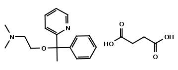 | Synonym : | N,N-Dimethyl-2-[1-phenyl-1-(2-pyridinyl)ethoxy]ethanamine Succinate Salt; 2-[?-(2-Dimethylaminoethoxy)-?-methylbenzyl]pyridine Succinate; Alsodorm; Decamium; Decapryn Succinate; Gittalun; Hoggar N; Meraprina; Mereprine; NSC 74772; Sedaplus; Unisom; |