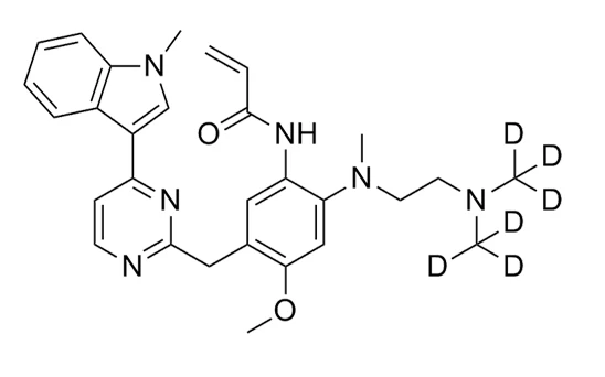 | Synonym : | N-[2-[[2-(Dimethylamino)ethyl]methylamino]-4-methoxy-5-[[4-(1-methyl-1H-indol-3-yl)-2-pyrimidinyl]amino]phenyl]-2-propenamide; AZD9291; Osimertinib; Tagrisso |