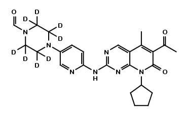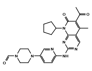 | Synonym : | 4-(6-((6-acetyl-8-cyclopentyl-5-methyl-7-oxo-7,8-dihydropyrido[2,3-d]pyrimidin-2-yl)amino)pyridin-3-yl)piperazine-1-carbaldehyde |