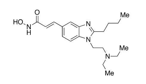 | Synonym : | (2E)-3-[2-Butyl-1-[2-(diethylamino)ethyl]-1H-benzimidazol-5-yl]-N-hydroxyacrylamide; (E)-3-[2-Butyl-1-(2-diethylaminoethyl)-1H-benzimidazol-5-yl]-N-hydroxy-2-propenamide; Kaempferol 3-O-?-D-(6-E-p-Coumaroylglucoside); SB 939; SB939; (2E)-3-[2-Butyl-1-[2-(diethylamino)ethyl]-1H-benzimidazol-5-yl]-N-hydroxy-2-propenamide; |