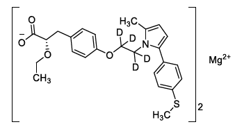 | Synonym : | (2S)-2-ethoxy-3-[4-(2-{2-methyl-5-[4-(methylsulfanyl)phenyl]-1H-pyrrol-1-yl}(1,1,2,2-²H?)ethoxy)phenyl]propanoic acid |