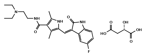| Synonym : | (Z)-N-(2-(Diethylamino)ethyl)-5-((5-fluoro-2-oxoindolin-3-ylidene)methyl)-2,4-dimethyl-1H-pyrrole-3-carboxamide (S)-2-hydroxysuccinate |