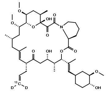 | Synonym : | (1R,9S,12S,13R,14S,17R,18E,21S,23S,24R,25S,27R)-1,14-dihydroxy-12-[(E)-1-[(1R,3R,4R)-4-hydroxy-3-methoxycyclohexyl]prop-1-en-2-yl]-23,25-dimethoxy-13,19,21,27-tetramethyl-17-prop-2-enyl-11,28-dioxa-4-azatricyclo[22.3.1.04,9]octacos-18-ene-2,3,10,16-tetrone 13CD2 |