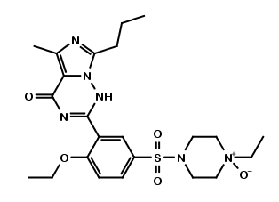 | Synonym : | 4-((4-ethoxy-3-(5-methyl-4-oxo-7-propyl-1,4-dihydroimidazo[5,1- f][1,2,4]triazin-2-yl)phenyl)sulfonyl)-1-ethylpiperazine 1-oxide; Vardenafil N-Oxide |